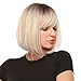 EMMOR Peluca corta rubia Bob para mujer – Pelucas de pelo sintético natural Ombre con flequillo, uso diario para cosplay de fiesta