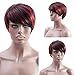 MEIRIYFA – Peluca sintética en corte Pixie con flequillo para mujer, peluca de pelo corto liso; ideal para disfraces, fiestas o el día a día (rojo y negro)