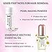 [Polvo de Perla Aceite Esencial de Manzanilla] – Polvo de perla: Calma la piel y permite que el papel encerado actúe mejor. Aceite esencial de manzanilla: Elimina los restos de cera, hidrata y repara la piel y previene las rojeces.