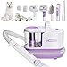 Maquina Cortar Pelo Perros con Aspirador, Cortapelos, Kit de Peluquería para Mascotas 5 en 1, Eliminador de Pelos de Baja Sonoridad, Máquina de Corte Bajo Ruido para Perros y Gatos (Morado)