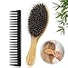 Cepillo Cerdas Jabali naturales con Peine Antitirones (Pack de 2), para Cepillar y Alisar Pelo de Hombre y Mujer – Cepillo Alisador Pelo Profesional para Cepillar Cabello Liso, Ondulado y Rizado