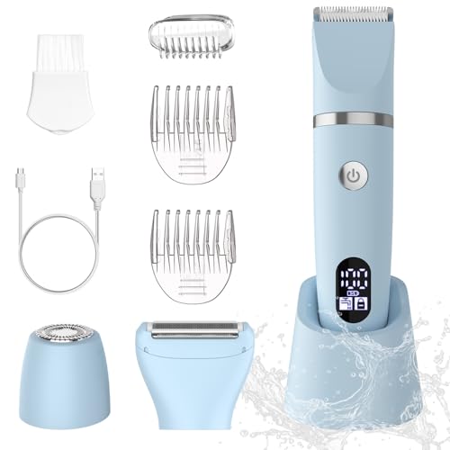 Scttomon afeitadora eléctrica para mujer cortapelos corporal para mujer recortadora para zona bikini Afeitado de piernas impermeable pantalla LCD seco/mojado 3 in 1 azul