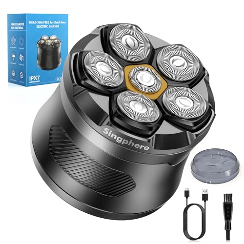 Singphere Afeitadora Cabeza Hombre, IPX7 Impermeable Maquina Afeitar Cabeza para Calvo, 6D Cabezales Magnéticos Maquinilla Afeitadora electrica hombre en Seco y Húmedo con Pantalla LED, USB-C