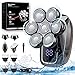 Afeitadora eléctrica para barba, afeitadora de pelo cabeza calva para hombre 7D, cortapelos 5 en 1, kit impermeable, húmedo y seco, 100% lavable, con 6 cabezales giratorios para cabello, barba, nariz,