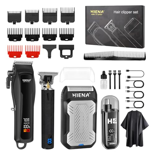 HIENA PRO Maquina de Cortar Pelo Hombre, Kit de Barbería Completo Inalámbrico Recargable Tipo-C con Pantalla LED Cortapelos, Recortador de Barba, Afeitadora de Lámina de Aluminio y Recortador de Vello