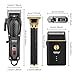 Juego profesional de cortapelos para hombres: el juego de cortapelos inalámbrico incluye cortapelos para hombres, recortadora de pelo y afeitadora de lámina de aluminio. El cortapelos viene con cuchillas ajustables para cortar todo tipo y longitud de pelo con facilidad, y la recortadora con cuchilla en T se encarga de los detalles del pelo y la barba. La afeitadora de láminas es adecuada para barbas gruesas, cortas y pobladas y la malla ultrafina de la cuchilla proporciona un afeitado apurado