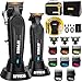 Kit de peluquería todo en uno de alta calidad: el mismo gasto, el doble de herramientas profesionales. Hemos diseñado un juego completo de cortapelos para ti con 8 peines magnéticos codificados por colores, capa profesional, peine de peinado de tamaño completo, aceite de cuchilla, cepillo de limpieza profunda, cable de carga, cargador USB de doble puerto, soporte de carga, estuche de almacenamiento y embalaje de regalo de lujo. Logra fácilmente un fantástico corte de pelo con nuestros accesorios profesionales.
