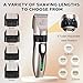 【Fácil de Usar】Esta Maquina Cortar Pelo Perros tiene 5 longitudes ajustables (0,8 mm-2 mm) y está equipada con 4 peines guía de longitud (3/6/9/12 mm). Puedes elegir el largo del pelo entre una variedad de longitudes y peines según tu longitud favorita.